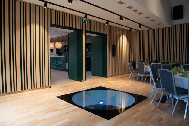Az emeleten kialakított stúdiók professzionális hangfelvételek készítésére lettek kialakítva. Ezekben a terekben a speciális több rétegű akusztikai álmennyezeti rendszerek és az egyedi falburkolatok biztosítják a zenészek számára a megfelelő akusztikai körülményeket. A földszinti rendezvényterem is olyan akusztikai tető és falburkolatokat kapott, mely akár egy szimfonikus zenekari felvételre is alkalmassá teszi a termet. Az épület első szárnypróbálgatásairól visszaérkező pozitív visszajelzések igazolják az akusztikai-, szakági- és építészeti tervezőcsapat szoros együttműködésének fontosságát.”