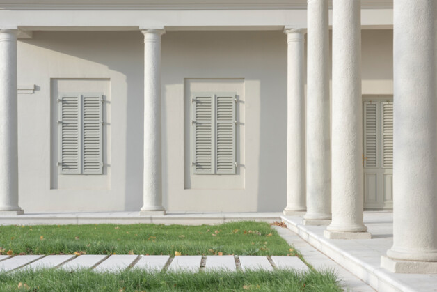 A decens elegancia a belső térben is folytatódik, finom pasztellszínekkel, érzékeny kortárs megoldásokkal. Egy kis minimál art a klasszicista épületben.