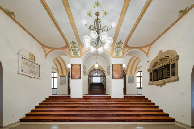 A belsőben is fontos változások történtek. A rettenetes színeket gyönyörű árnyalatok váltották, elegáns, könnyed, világos, felemelő lett újra a bejárti csarnok, a lépcsőház és a folyosók is. A díszítőfestések életteliek. Egy egészen más közegbe térhettek vissza a diákok.
