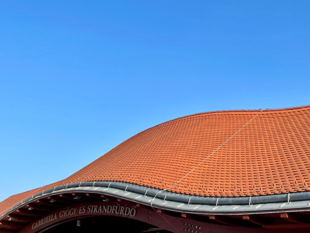 A tetősíkok mindhárom irányban (x/y/z koordináták mentén) inflexiós kapcsolódású ívekkel operáló, "hullámos" karakterű felületek, mely geometriai tény okán kizárólag kiselemes fedés jöhetett szóba, mindemellett a hornyolt cserép alkalmazása kizárt volt.