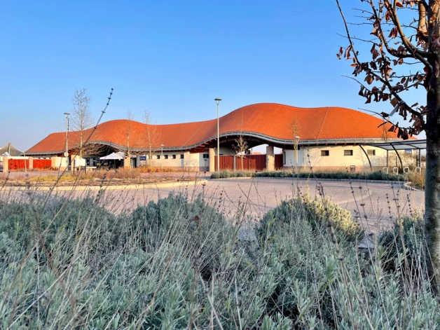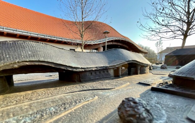 Ennél a fogadó épületnél ez megtörtént. Hullámzó tetejével, egyszerű tömegével több lett annál, mint falak, tetők összessége. Egy jel, amely tetőemelkedésével már messziről kijelöli a bejáratokat, befogad és egyben utal a mögötte lévő funkciókra is. (pénztár, porta, vizesblokk, büfé). Alaprajzában, funkciójában kiszolgálja az adott terület igényeit, de még is több lesz annál, mint egy szolgáló funkció. Fedése mesterien szolgálja hullámzó vonalát, nagy mesterségbeli tudásról is tanúskodik.