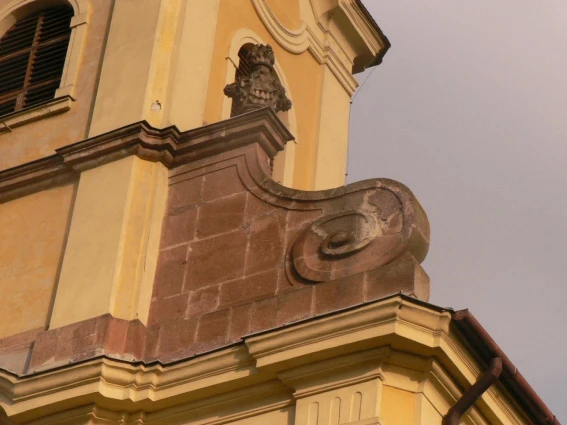 A templom telepítése a főútról lépcsősoron megközelíthető, keletelt, középtornyos. A főhomlokzatán a torony egy enyhén előreugró középrizaliton fut felfelé, a főpárkány magasságában középen kis ívelt párkányrész alatt az építtető két püspök címere helyezkedik el.